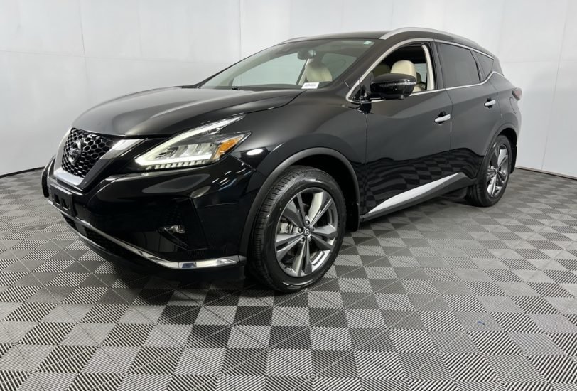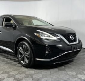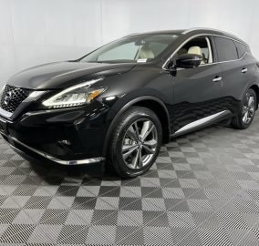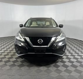 Experience refined comfort in the Super Black Metallic 2020 Nissan Murano Platinum FWD, powered by a 3.5L V6 engine paired with a CVT with Xtronic for smooth, efficient performance. This premium SUV features Semi-Aniline leather-appointed seat trim, heated and ventilated front seats, heated rear seats, a heated steering wheel and a power moonroof. Stay connected with an 8" touchscreen, NissanConnect Navigation, Apple CarPlay and Android Auto, and enjoy immersive sound from the Bose Premium Audio System. Convenience meets luxury with a power liftgate, remote keyless entry and steering wheel mounted audio controls. Safety highlights include Blind Spot Warning, Lane Departure Warning and an exterior parking camera rear. Riding on bold 20" dark hyper silver wheels, the Murano Platinum delivers comfort, tech and confidence for every drive.
