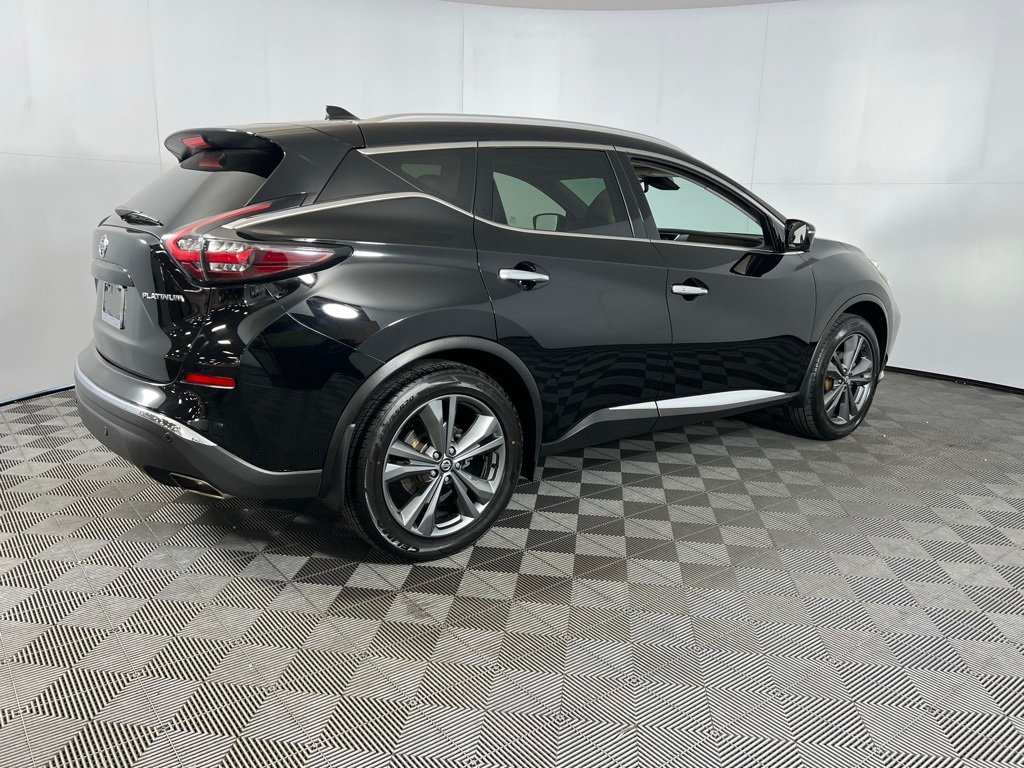 Experience refined comfort in the Super Black Metallic 2020 Nissan Murano Platinum FWD, powered by a 3.5L V6 engine paired with a CVT with Xtronic for smooth, efficient performance. This premium SUV features Semi-Aniline leather-appointed seat trim, heated and ventilated front seats, heated rear seats, a heated steering wheel and a power moonroof. Stay connected with an 8" touchscreen, NissanConnect Navigation, Apple CarPlay and Android Auto, and enjoy immersive sound from the Bose Premium Audio System. Convenience meets luxury with a power liftgate, remote keyless entry and steering wheel mounted audio controls. Safety highlights include Blind Spot Warning, Lane Departure Warning and an exterior parking camera rear. Riding on bold 20" dark hyper silver wheels, the Murano Platinum delivers comfort, tech and confidence for every drive.