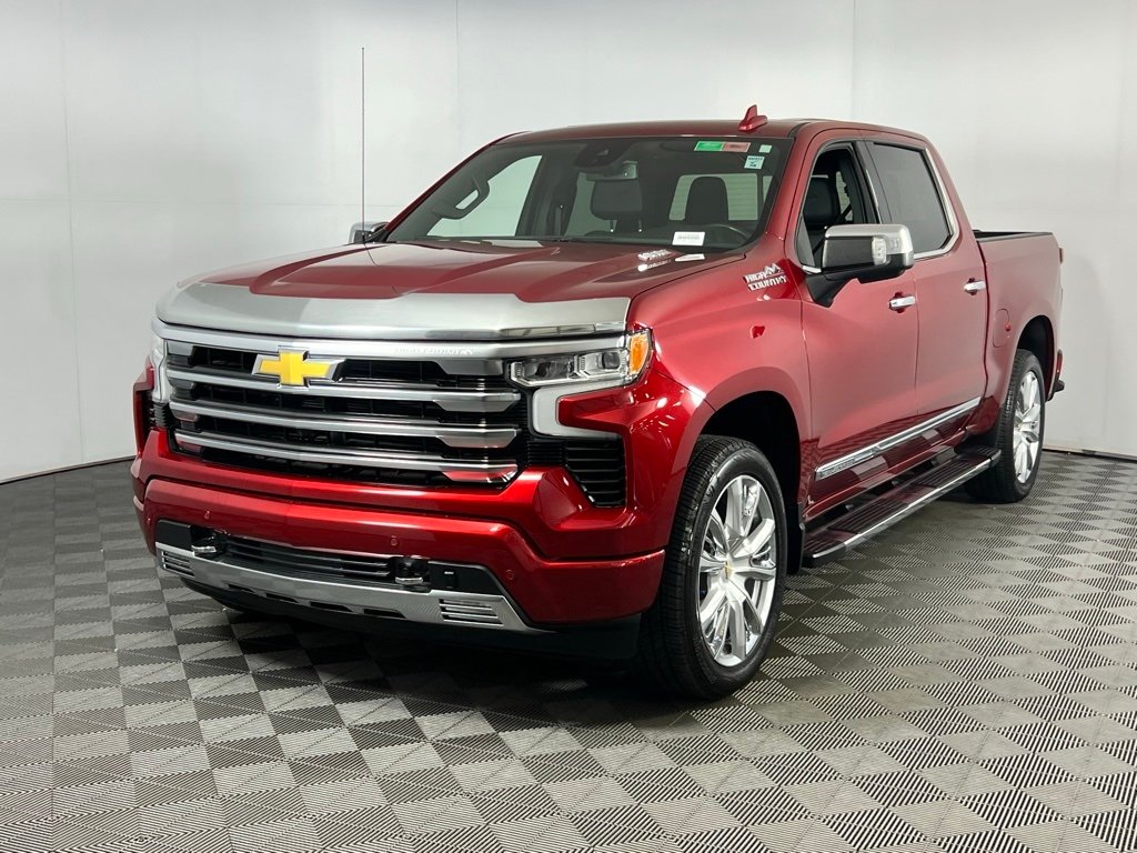 Experience luxury, power, and cutting-edge technology with this Radiant Red Tintcoat 2024 Chevrolet Silverado 1500 High Country 4WD, equipped with a robust 3.0L I6 engine and smooth 10-speed automatic transmission. This premium truck features the High Country Premium Package, High Capacity Suspension, and bold 22" painted aluminum wheels for enhanced performance and style. Inside, enjoy top-tier comfort with leather-appointed front bucket seats, heated and ventilated front seats, dual-zone automatic A/C, memory seats, and a power sunroof. Advanced tech includes a massive 13.4" touchscreen, Chevrolet Infotainment 3 Premium System, Apple CarPlay, Android Auto, 12.3" digital driver display, and a Bose 7-speaker premium audio system. Stay safe with Chevy Safety Assist, Forward Collision Alert, Lane Keep Assist, Lane Departure Warning, Trailer Blind Spot Alert, and Front and Rear Park Assist. Additional highlights include a Chevytec spray-on bedliner, chrome assist steps, adaptive cruise control, power rear sliding window, and all-weather floor liners, making this Silverado 1500 High Country the ultimate blend of strength, luxury, and smart technology.