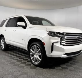 Experience top-tier luxury, power, and technology with the 2024 Chevrolet Tahoe High Country 4WD in stunning Iridescent Pearl Tricoat, featuring a robust 6.2L EcoTec3 V8 engine paired with a 10-speed automatic transmission and 4WD capability. This premium full-size SUV offers ultimate comfort with Jet Black perforated leather seats, heated and ventilated front seats, power-release second-row bucket seats, and a power-folding third-row 60/40 split-bench seat, accommodating the whole family with ease. Enjoy cutting-edge tech including a Chevrolet Infotainment 3 Premium System, Apple CarPlay/Android Auto, Bose 10-speaker Centerpoint surround audio, navigation, wireless charging, HD Surround Vision, and a head-up display. Designed for performance and utility, it comes equipped with the Advanced Trailering Package, Max Trailering Package, Air Ride Adaptive Suspension, Magnetic Ride Control, 2-Speed AutoTrac transfer case, and Smart Trailer Integration Indicator. Safety is a priority with Adaptive Cruise Control, Forward Collision Alert, Lane Keep Assist, Lane Departure Warning, Trailer Side Blind Zone Alert, and Rear Cross Traffic Alert. Exterior highlights include 22" Sterling Silver premium painted wheels, power-retractable assist steps, dual-pane panoramic sunroof, power liftgate, and Hitch View with pan/zoom. The 2024 Tahoe High Country is the ultimate combination of bold capability, refined comfort, and advanced innovation.