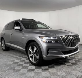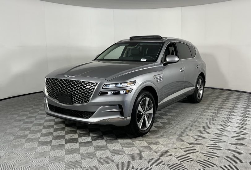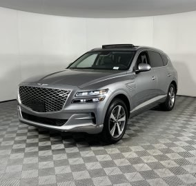 The 2024 Genesis GV80 3.5T AWD in Savile Silver features a smooth 8-speed automatic and a powerful 3.5L DOHC engine. Enjoy tech like Apple CarPlay & Android Auto, a 14.5" navigation system with AM/FM/HD radio, and an exterior parking camera rear. Comfort is top-notch with heated and ventilated front bucket seats, heated steering wheel, and Nappa leather seating surfaces. Additional features include a power liftgate, power moonroof, blind spot monitor with rear cross traffic alert, and stylish 20" medium metallic gray alloy wheels. Remote keyless entry and steering wheel mounted audio controls complete this luxury SUV.