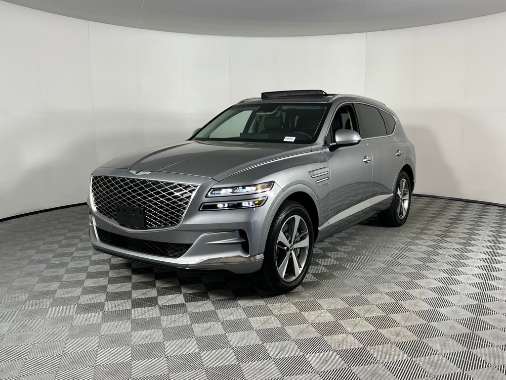 The 2024 Genesis GV80 3.5T AWD in Savile Silver features a smooth 8-speed automatic and a powerful 3.5L DOHC engine. Enjoy tech like Apple CarPlay & Android Auto, a 14.5" navigation system with AM/FM/HD radio, and an exterior parking camera rear. Comfort is top-notch with heated and ventilated front bucket seats, heated steering wheel, and Nappa leather seating surfaces. Additional features include a power liftgate, power moonroof, blind spot monitor with rear cross traffic alert, and stylish 20" medium metallic gray alloy wheels. Remote keyless entry and steering wheel mounted audio controls complete this luxury SUV.